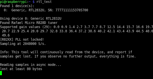 kun je de dongle testen en dat loopt hier niet zo goed af , zie " usb_claim_interface_error -6 " en verder "Failed to open rtlsdr device #0"